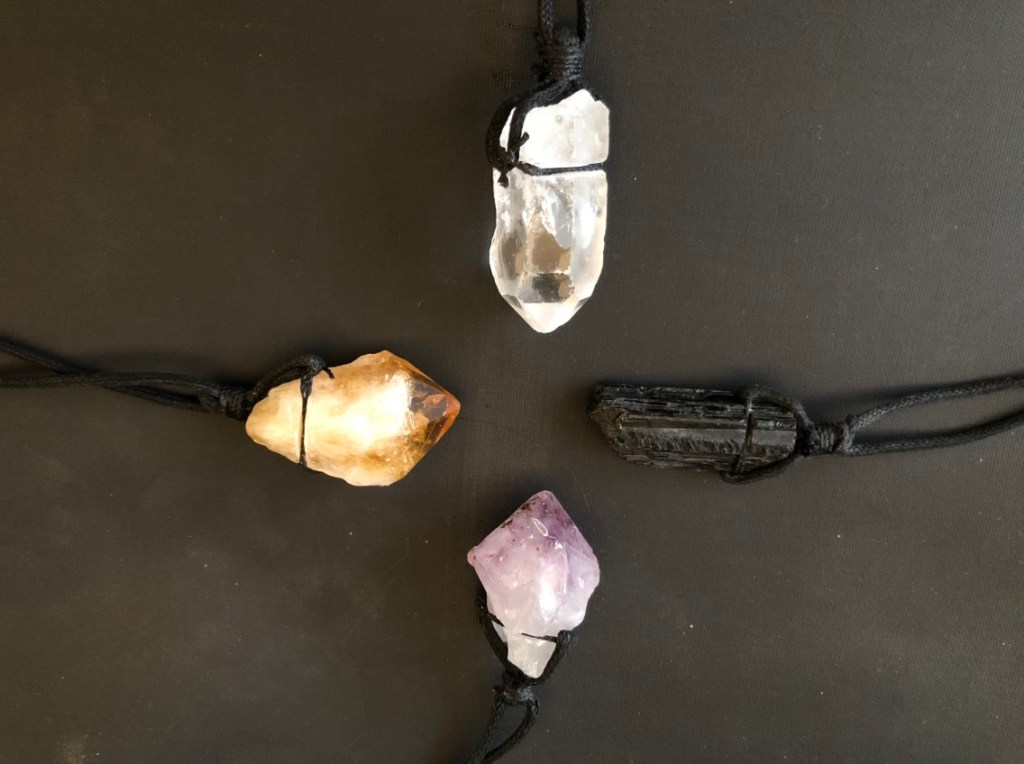 Amethist, toermalijn, bergkristal of citrien hanger